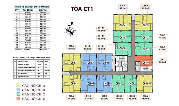 - Diện tích căn hộ tại tòa CT2 đa dạng như sau: