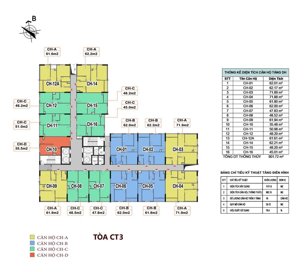 Tòa CT1 và CT3: cao 24 tầng + 1 tầng thương mại (đã bàn giao tòa CT1 vào tháng 11/2019; Tòa CT3: bàn giao từ ngày 31/12/2020)
